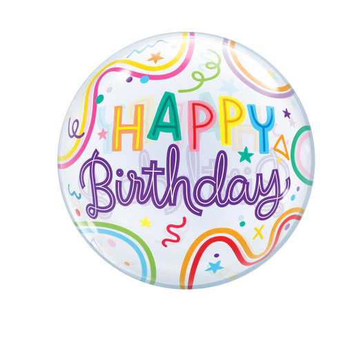 Happy Birthday Swiggle Lines & Stars Bubble Balloon